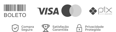 Cartão de crédito (em até 10x), boleto bancário e Pix.